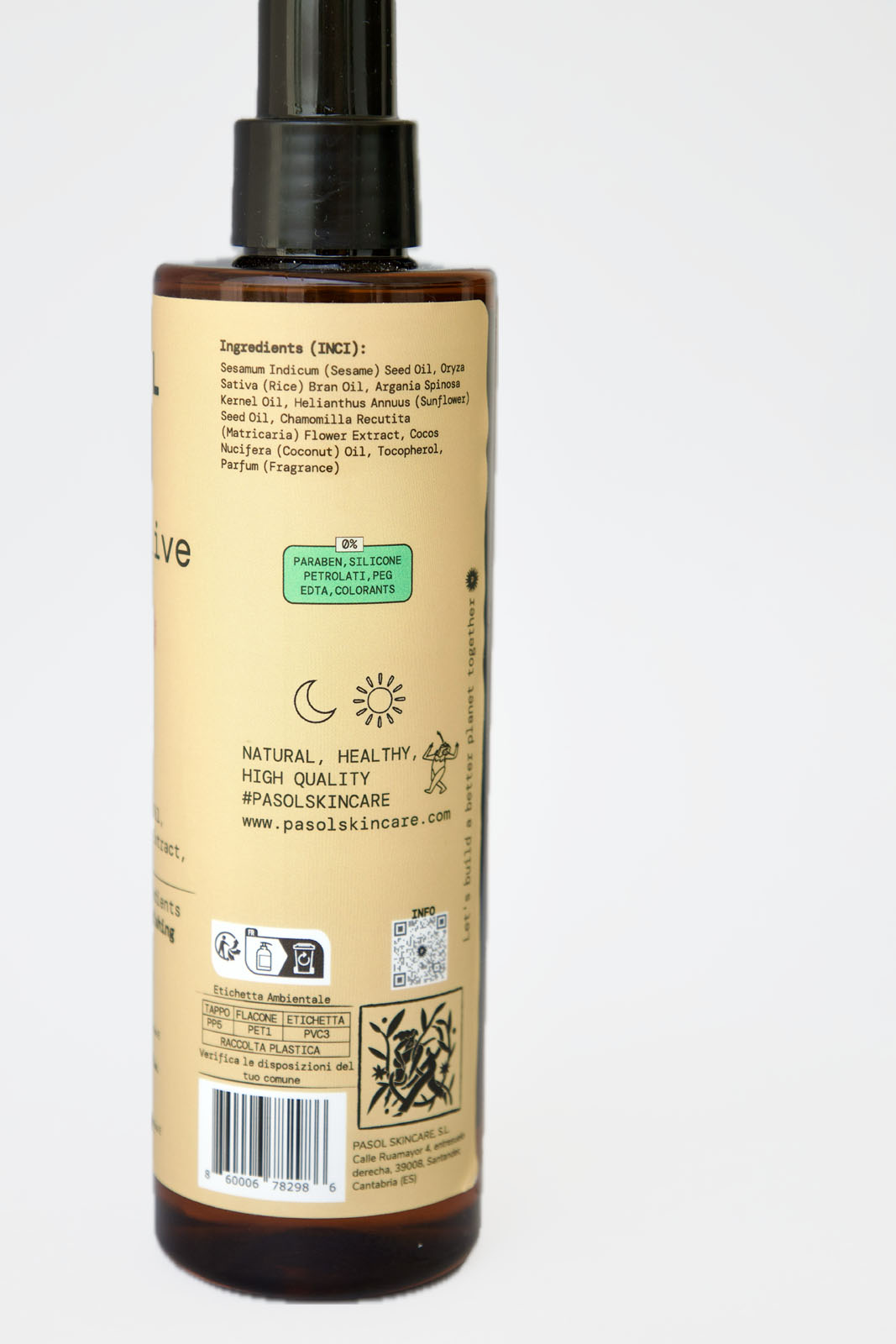 Descubra el elixir definitivo para su piel con el Body Oil natural de Pasolskincare. Esta fórmula de alta gama, compuesta por un 99,6% de ingredientes naturales vegetales, proporciona una nutrición corporal profunda, restaurando la luminosidad y elasticidad de la dermis de forma inmediata y sin dejar residuo graso.